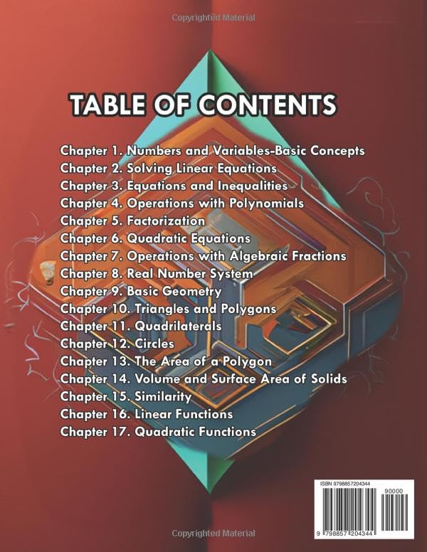 Hey incoming freshmen! Feeling a bit nervous about Algebra 1 and Geometry? This handbook is your secret weapon to conquering those classes! It’s packed with everything you need to know, from the basics to some cool tricks I have learned after spending years cracking the code of Algebra 1 and Geometry, solving countless problems, and mastering a wide range of concepts along the way. Think of this book as your “personal” math tutor. It breaks down tough concepts into bite-sized pieces that are easy to understand. Plus, it’s filled with examples to show you exactly how to solve problems. This handbook is about more than just getting answers. It’ll also help you see how math is all around you, not just a bunch of numbers on a page. You’ll learn how to think critically and solve problems like a pro! By the end, you’ll be unlocking the mysteries of math and feeling confident in your abilities. So, are you ready to rock Algebra 1 and Geometry? Grab this handbook and get ready to amaze yourself (and maybe even your teachers and friends) with your newfound math skills!