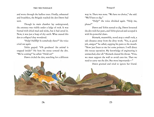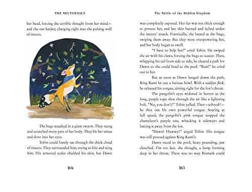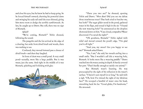 “Wacky illustrations and another plot that twists and turns” –Booklist In the Nocturnals fourth chapter book, Dawn a serious fox, Tobin a sweet pangolin, and Bismark a pint-sized sugar glider, travel to a distant watering hole during dry season. Along the way, strange things happen: the ground crumbles, water disappears, and huge tumbleweeds chase after them. Is the forest alive? When the animals start hearing voices, they begin to wonder: are they imagining things or is something, or someone, else responsible? Only the Nocturnals can solve this mystery and unite the forest! GREAT FOR KIDS AGES 8-11 Blends unusual animals and science for STEAM readers! Full-color illustrations at the start of each chapter Short approachable chapters and wide margins. 186 pages + bonus content Bonus Book Content: Nonfiction Animal Glossary, Author Q&A, and Book Club Questions. Download complimentary printable activities on the book’s website: animal mask crafts, bingo, word games, discussion questions, and Common Core Language Arts and Next Generation Science educator guides. READ ALL FOUR ADVENTURES WITH THE NOCTURNALS The Nocturnals is a critically acclaimed middle grade chapter book series following three unlikely friends–Dawn, a serious fox, Tobin, a sweet pangolin, and Bismark, a pint-sized sugar glider. Discover the friendships, teamwork, and humor as the Nocturnal Brigade solves the unpredictable mysteries of the night.
