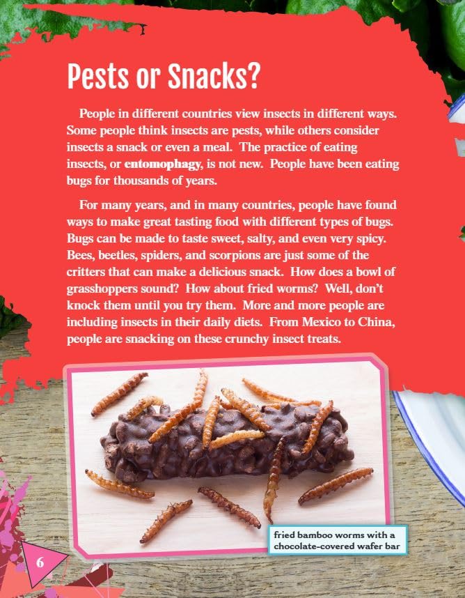 Are you going to eat that? Whether it’s Jing Leed from Thailand or jumiles from Mexico, students will be engrossed in-and grossed out by-reading about edible insects. This book seamlessly integrates the teaching of math and reading, and uses real-world examples to teach math concepts like comparing fractions. The challenging practice problems, graphs, and sidebars provide many opportunities for students to practice their developing math skills, and apply what they’ve learned to their daily lives. Text features include captions, a glossary, an index, and a table of contents to increase students’ vocabulary and literacy skills and their interaction with the text. Math Talk poses problems for further thinking, requiring students to use their higher-order thinking skills.