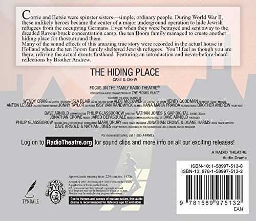 Enter into The Hiding Place to relive Corrie ten Boom’s heart-pounding account as a leader in the Dutch Underground during World War II. In this latest release from Focus on the Family’s Radio Theatre, you’ll find tragedy, perseverance, and the reality of God’s amazing love. With a cast of internationally acclaimed actors, cinema-quality sound effects, and full orchestration, you’ll experience this classic, real-life story like never before.