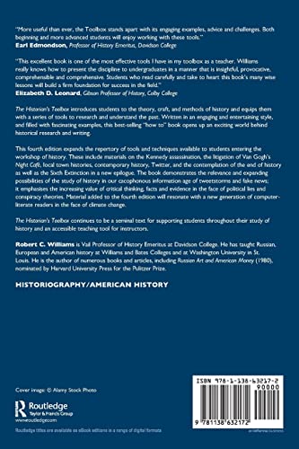 The Historian’s Toolbox introduces students to the theory, craft, and methods of history and equips them with a series of tools to research and understand the past. Written in an engaging and entertaining style, and filled with fascinating examples, this best-selling “how to” book opens up an exciting world behind historical research and writing. This fourth edition expands the repertory of tools and techniques available to students entering the workshop of history. These include materials on the Kennedy assassination, the litigation of Van Gogh’s Night Cafe, local town histories, contemporary history, Twitter, and the contemplation of the end of history as well as the Sixth Extinction in a new epilogue. The book demonstrates the relevance and expanding possibilities of the study of history in our cacophonous information age of tweetstorms and fake news; it emphasises the increasing value of critical thinking, facts and evidence in the face of political lies and conspiracy theories. Material added to the fourth edition will resonate with a new generation of computer-literate readers in the face of climate change. The Historian’s Toolbox continues to be a seminal text for supporting students throughout their study of history and an accessible teaching tool for instructors.