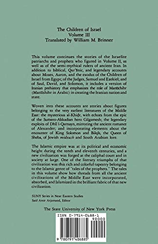 This volume continues the stories of the Israelite patriarchs and prophets who figured in Volume II, as well as of the semi-mythical rulers of ancient Iran. In addition to biblical, Qur’anic, and legendary accounts about Moses, Aaron, and the exodus of the Children of Israel from Egypt; of the Judges, Samuel and Ezekiel; and of Saul, David, and Solomon, it includes a version of Iranian prehistory that emphasizes the role of Manuchihr (Manushihr in Arabic) in creating the Iranian nation and state. Woven into these accounts are stories about figures belonging to the very earliest literatures of the Middle East: the mysterious al-Khidwith echoes from the epic of the Sumero-Akkadian hero Gilgamesh; the legendary exploits of Dhu l-Qarnayn, mirroring the ancient romance of Alexander; and incorporating elements about the encounter of King Solomon and Bilqis, the Queen of Sheba, of Jewish midrash and South Arabian lore. The Islamic empire was at its political and economic height during the tenth and eleventh centuries, and a new civilization was forged at the caliphal court and in society at large. One of the literary triumphs of that civilization was this rich and colorful tapestry belonging to the Islamic genre of “tales of the prophets.” The tales in this volume show how threads from all the ancient civilizations of the Middle East were incorporated, absorbed, and Islamized in the brilliant fabric of that new civilization.