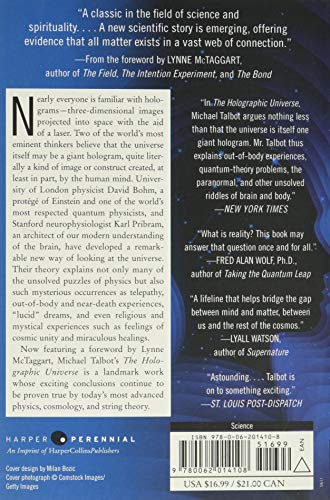 “In The Holographic Universe, Michael Talbot argues nothing less than that the universe is itself one giant hologram. Mr. Talbot thus explains out-of-body experiences, quantum-theory problems, the paranormal, and other unsolved riddles of brain and body.” — New York Times Now featuring a foreword by Lynne McTaggart, The Holographic Universe is a landmark work whose exciting conclusions continue to be proven true by today’s most advanced physics, cosmology, and string theory. Nearly everyone is familiar with holograms–three-dimensional images projected into space with the aid of a laser. Two of the world’s most eminent thinkers believe that the universe itself may be a giant hologram, quite literally a kind of image or construct created, at least in part, by the human mind. University of London physicist David Bohm, a protege of Einstein and one of the world’s most respected quantum physicists, and Stanford neurophysiologist Karl Pribram, an architect of our modern understanding of the brain, have developed a remarkable new way of looking at the universe. Their theory explains not only many of the unsolved puzzles of physics but also such mysterious occurrences as telepathy, out-of-body and near-death experiences, “lucid” dreams, and even religious and mystical experiences such as feelings of cosmic unity and miraculous healings.