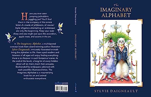 “There’s a prismatic intensity to Daigneault’s pictures that gives them a giddy feel.”–The Wall Street Journal, Closer Look Feature Step inside the deliciously detailed pages of Sylvie Daigneault’s The Imaginary Alphabet. You never know what you might discover! Agile alligators attempting an arabesque are just the beginning of this alphabetical adventure. Keep your eyes sharp and you might just spot the accordion, apple trees, and acorns hiding in the art. When you’ve read about the sleepy sloths swinging by the sea, stick around to spy the sailboat, snorkel, and sandals too. In The Imaginary Alphabet, whimsical art brings the alphabet to life. Keen-eyed readers and listeners of all ages will enjoy finding everything there is to discover in each fantastical scene. Do you think you found it all? The book ends with a long list of every hidden detail. Bookended by endpapers adorned with each jewellike illustrated letter, The Imaginary Alphabet is a mesmerizing book for word-lovers and art and animal enthusiasts everywhere.