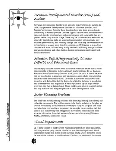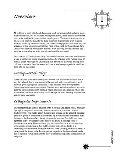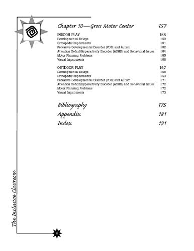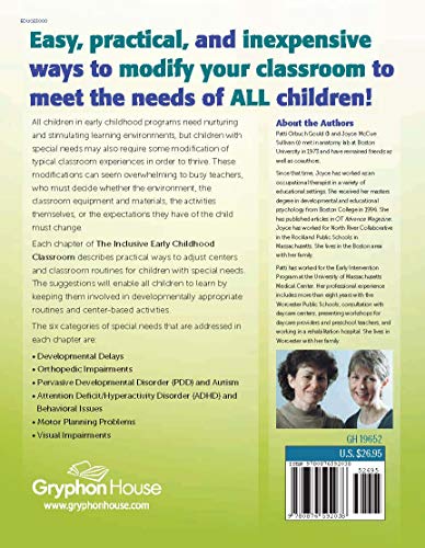 All children require nurturing and stimulating learning environments, but typical early childhood classrooms should be modified for children with special needs. The Inclusive Early Childhood Classroom is written to help teachers look at classroom design in a new way and suggests different ways of approaching activities to help children with special needs become successful. By modifying the classroom and activities, all children will be actively engaged. Each chapter focuses on either a learning center, such as art or science, or a time of the day, such as snack time or dismissal, with particular attention to the needs of children who are developmentally delayed, orthopedically impaired, have autism/Pervasive Development Disorder, Attention Deficit Hyperactivity Disorder, behavioral issues, motor planning problems, or visual impairments.
