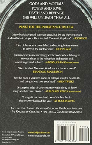 After her mother’s death, a young woman is summoned to the floating city of Sky to claim a royal inheritance she never knew existed in this epic fantasy trilogy from the NYT bestselling author of The Fifth Season. Yeine Darr is an outcast from the barbarian north. But when her mother dies under mysterious circumstances, she is summoned to the majestic city of Sky. There, to her shock, Yeine is named an heiress to the king. But the throne of the Hundred Thousand Kingdoms is not easily won, and Yeine is thrust into a vicious power struggle. The Inheritance Trilogy omnibus includes the novels: The Hundred Thousand Kingdoms, The Broken Kingdoms, The Kingdom of Gods, and a brand new novella set in the same world: The Awakened Kingdom.