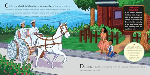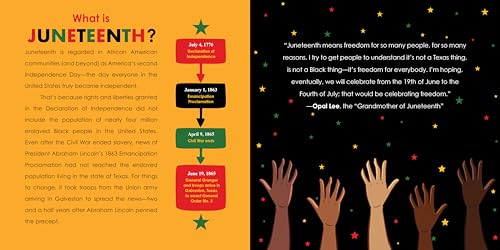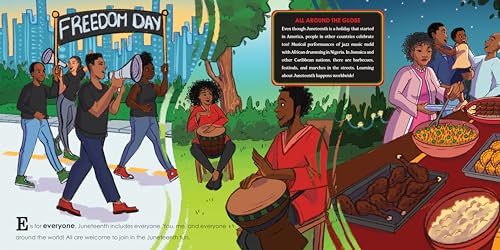 This book teaches young children about the historical and cultural significance of the Juneteenth holiday in an accessible alphabet format.