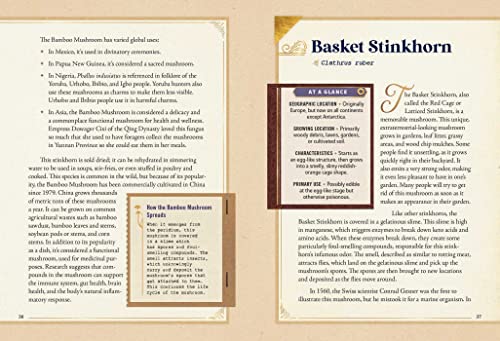 This illustrated guide provides a scientific and historical education on different species of mushrooms.