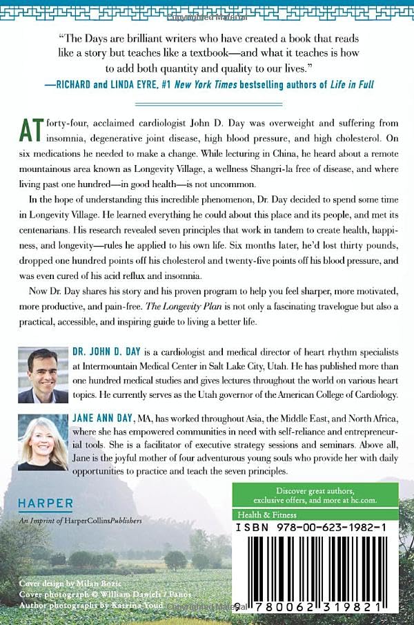 From a renowned Johns Hopkins- and Stanford-educated cardiologist at Intermountain Medical Center–a hospital system that President Obama has praised as an “island of excellence”–comes the story of his time living in Longevity Village in China, and the seven lessons he learned there that lead to a happy, healthy, long life At forty-four, acclaimed cardiologist John Day was overweight and suffered from insomnia, degenerative joint disease, high blood pressure, and high cholesterol. On six medications and suffering constant aches, he needed to make a change. While lecturing in China, he’d heard about a remote mountainous region known as Longevity Village, a wellness Shangri-La free of heart disease, cancer, diabetes, obesity, dementia, depression, and insomnia, and where living past one hundred–in good health–is not uncommon. In the hope of understanding this incredible phenomenon, Day, a Mandarin speaker, decided to spend some time living in Longevity Village. He learned everything he could about this place and its people, and met its centenarians. His research revealed seven principles that work in tandem to create health, happiness, and longevity–rules he applied to his own life. Six months later, he’d lost thirty pounds, dropped one hundred points off his cholesterol and twenty-five points off his blood pressure, and was even cured of his acid reflux and insomnia. In 2014 he began a series of four-month support groups comprised of patients who worked together to apply the lessons of Longevity Village to their lives. Ninety-two percent of the participants were able to adhere to their plans and stay on pace to reach their health goals. Now Dr. Day shares his story and proven program to help you feel sharper, more motivated, productive, and pain-free. The Longevity Plan is not only a fascinating travelogue but also a practical, accessible, and groundbreaking guide to a better life.