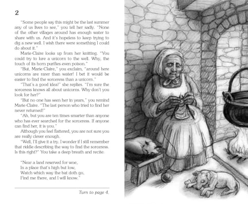 Search for a magical unicorn’s horn in this interactive book where YOU decide what happens next! Packed with 27 possible endings! Choose Your Own Adventure books-the 4th bestselling children’s series of all time-are back and as much fun as you remember. Kids and adults agree, these are the books that get 9- to 12-year-olds reading. YOU are your medieval village’s last hope at finding a magical unicorn’s horn that can purify your water. Will your enchanted net catch a unicorn or a dragon? Can the sorceress help? Or will she cause even more trouble? A fire-breathing dragon, angry warlock, and powerful wood-witch all stand in your path. Be careful, the choices YOU make might end in glory, disaster, or certain death. Spend more time in Deborah Lerme Goodman’s magical world of unicorns with companion titles Escape of the Unicorn, The Flight of the Unicorn, The Rescue of the Unicorn, The Warlock and the Unicorn, and the Unicorn Box.