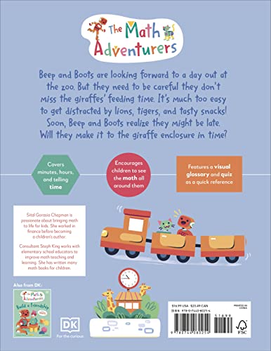 Join two friendly and funny robots, Beep and Boots, as they learn all about time and discover that math is everywhere they look. Beep and Boots are looking forward to a day out at the zoo, especially getting to see their favorite animal – the giraffe. But they have to keep an eye on the time else they’ll miss feeding time! It’s all too easy to get distracted by lions, tigers, and tasty snacks – 15 minutes here, half an hour there! Pretty soon, Beep and Boots realize they might be late. Will they make it to the giraffe enclosure in time? This fun and educational math book for children features: – A fun and engaging introduction to telling the time for children aged 5-7. – Lively illustrations and rhyming text that brings the characters and math topics to life. – Key math topics including shapes, time, measurements, division, and fractions – all essential learning for this age group. – Illustrations that are in a non-gendered color palette, making the traditionally male subject relatable for all genders. – A relatable storyline for young readers, encouraging them to look for math in their homes and environments, and seeing how, often without even knowing it, they use math everyday. Characterful illustrations and rhyming text bring Beep and Boots to life. Children aged 5-7 will love seeing the adventures the robot duo go on and will learn key mathematical concepts concerning time in a gentle, fun way, including telling the time and hours, minutes, and seconds. Questions at the end of the book reinforce learning and encourage kids to look at the math they can see in the world around them. At DK, we believe in the power of discovery. So why stop there? The Math Adventurers series uses everyday scenarios to show how math is all around us, making this difficult subject more accessible. If you loved The Math Adventurers: A Day at the Zoo, then you’ll love The Math Adventurers: Chip and Christine Build a Friendship!