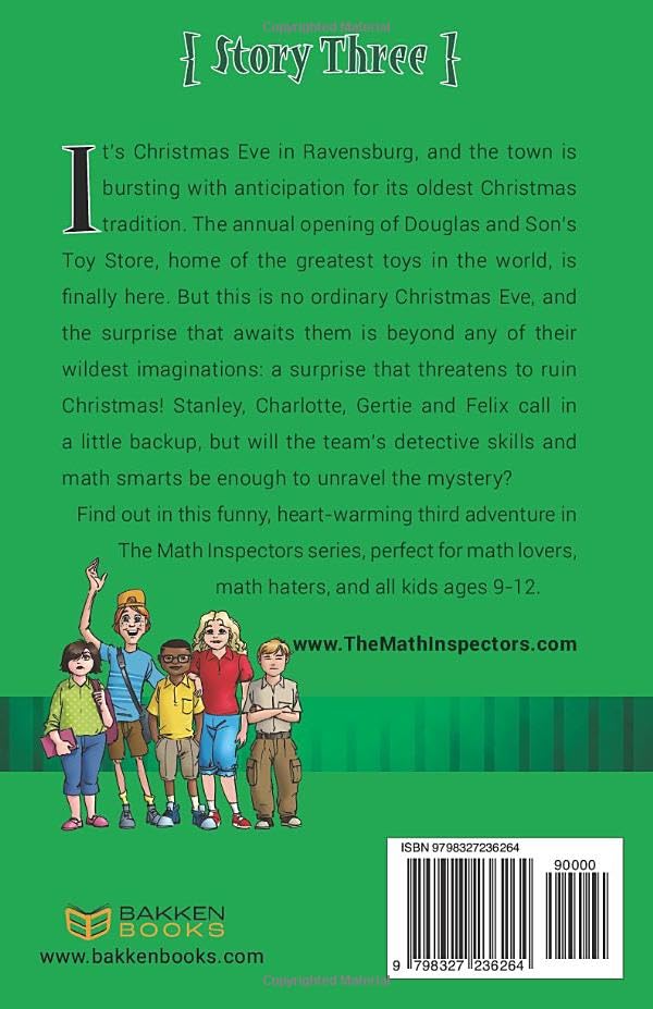 Do you want your kids to love reading, to get lost in an adventure, and maybe even enjoy math? THE MATH INSPECTORS HAVE AN ANSWER! Each book in this popular mystery & detective series is designed to draw readers aged 9-12 into a mystery so intriguing, with characters so smart and funny, that they forget they’re also learning about math. Buy the third book in this great crime fighting series,The Math Inspectors: The Case of the Christmas Caper, today! Age Level: 9 and up Grade Level: 3 and up Like Sherlock Holmes… but with Fractions! THE MATH INSPECTORS = Adventure and Mystery with just a bit of Math! Book One – The Case of the Claymore Diamond. Book Two – The Case of the Mysterious Mr. Jekyll. Book Three – The Case of the Christmas Caper. Book Four – The Case of the Hamilton Roller Coaster. Book Five – The Case of the Forgotten Mine . THE MATH INSPECTORS JOURNALS The Math Inspectors: Top Secret Journal. The Math Inspectors: Math Class Notebook. The Math Inspectors: Make Your Own Comic Book. . Also By Daniel Kenney The History Mystery Kids 1: Fiasco in Florida. The History Mystery Kids 2: Magic in Michigan. The History Mystery Kids 3: Midnight in Massachusetts. The History Mystery Kids 4: Camping in Colorado. The History Mystery Kids 5: Sabotage in South Carolina.