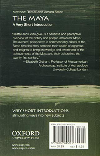 The Maya forged one of the greatest societies in the history of the ancient Americas — and in all of human history. Long before contact with Europeans, Maya communities built spectacular cities with large, well-fed large populations. They mastered the visual arts, and developed a sophisticated writing system that recorded extraordinary knowledge in calendrics, mathematics, and astronomy. The Maya achieved all this without area-wide centralized control. There was never a single, unified Maya state or empire, but always numerous, evolving ethnic groups speaking dozens of distinct Mayan languages. The people we call “Maya” never thought of themselves as such; yet something definable, unique, and endlessly fascinating – what we call Maya culture – has clearly existed for millennia. So what was their self-identity and how did Maya civilization come to be “invented?” With the Maya historically subdivided and misunderstood in so many ways, the pursuit of what made them “the Maya” is all the more important. In this Very Short Introduction, Restall and Solari explore the themes of Maya identity, city-state political culture, art and architecture, the Maya concept of the cosmos, and the Maya experience of contact with — including invasion by — outsiders. Despite its brevity, this book is unique for its treatment of all periods of Maya civilization, from its origins to the present.