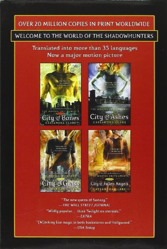 Don’t miss The Mortal Instruments: City of Bones, soon to be a major motion picture in theaters August 2013.The first four books in the #1 New York Times bestselling Mortal Instruments series, now available in a collectible paperback boxed set.Enter the secret world of the Shadowhunters with this handsomely packaged boxed set that includes City of Bones, City of Ashes, City of Glass, and City of Fallen Angels. The Mortal Instruments books have more than five million copies in print, and this collectible set of the first four volumes in paperback makes a great gift for newcomers to the series and for loyal fans alike.Book Details:Format: PaperbackPublication Date: 10/2/2012Pages: 2032