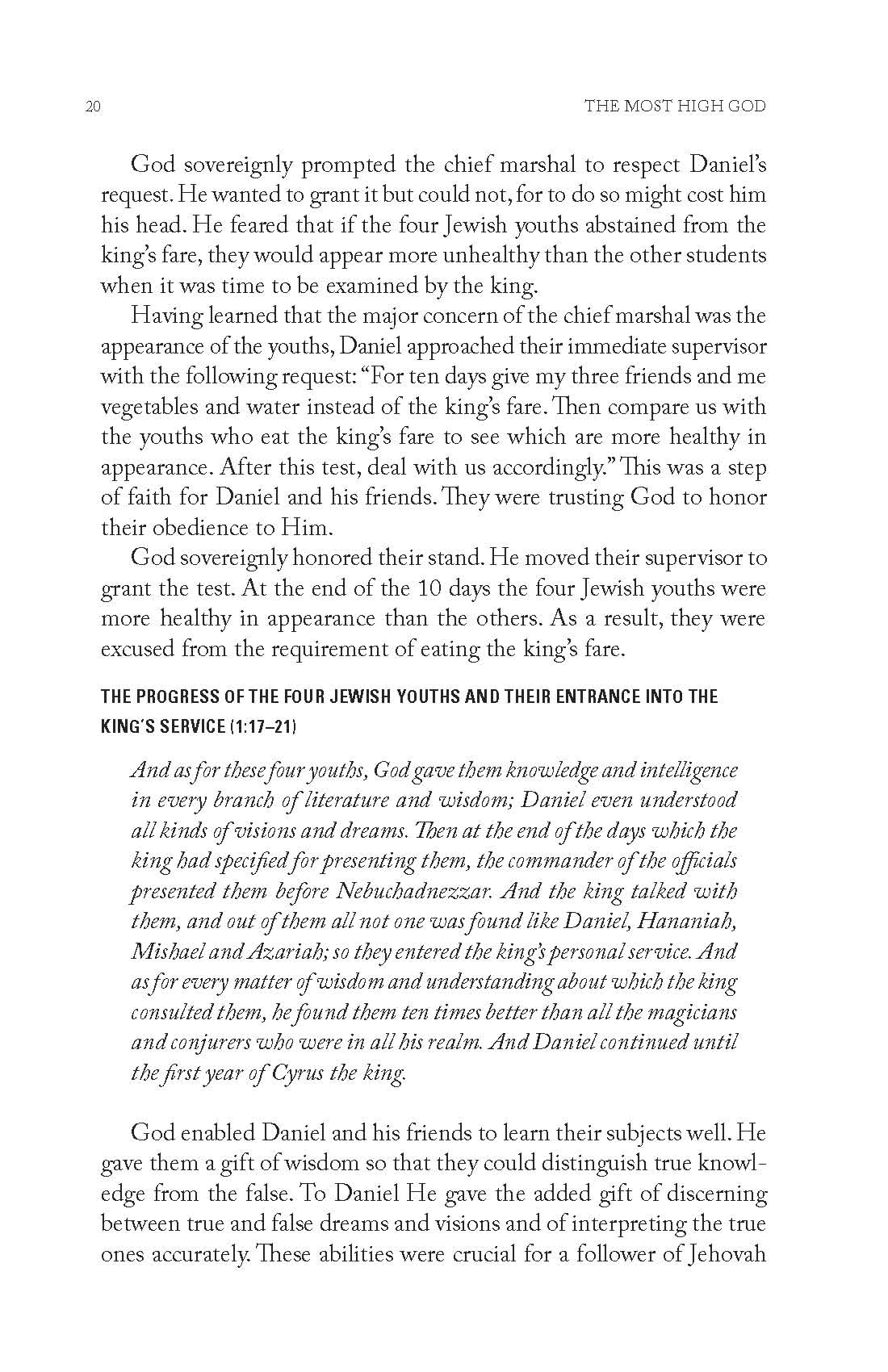 THE MOST HIGH GOD: One of the finest commentaries on the book of Daniel available today, this clear, concise, and consistently premillennial exposition sheds tremendous light on prophecy, the Times of the Gentiles, and other portions of the prophetic Word.
