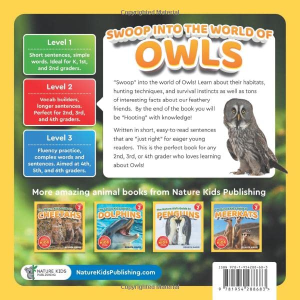 SWOOP into the “The Nature Kids Guide to Owls” – An Enchanting Adventure for 2nd, 3rd, and 4th Graders! Are your kids captivated by the mysterious world of owls? Do they long to uncover the secrets of these nocturnal creatures? Look no further! “The Nature Kids Guide to Owls” is here to ignite their curiosity and take them on a captivating journey through the fascinating realm of owls. Within the pages of this magical book, your child will encounter a diverse array of owls, including the majestic Great Horned Owl, the enchanting Long-eared Owl, the awe-inspiring Snowy Owl, and many more. Prepare to be mesmerized as each owl species comes to life through vivid illustrations and captivating descriptions. As your child delves into this enchanting narrative, they’ll discover the unique characteristics and behaviors of each owl species. From the haunting calls of the Scops Owl to the stoic presence of the Barred Owl, their knowledge of owls will soar to new heights. They’ll be amazed by the silent flight of the Barn Owl and the piercing gaze of the Spotted Eagle Owl. But this book is more than just an adventure–it’s an opportunity to learn. Your child will encounter vocabulary words throughout the book, expanding their language skills and boosting their reading abilities. With each turn of the page, they’ll develop a deeper understanding and appreciation for these magnificent creatures. Ready to embark on this extraordinary journey? Grab a copy of “The Nature Kids Guide to Owls” today! Immerse your child in the enchanting world of owls, where wisdom and wonder await. Watch as their love for reading, nature, and conservation blossoms, inspired by these majestic creatures. It’s time to spread your wings and fly into the captivating world of owls–order your copy now and let the adventure begin!