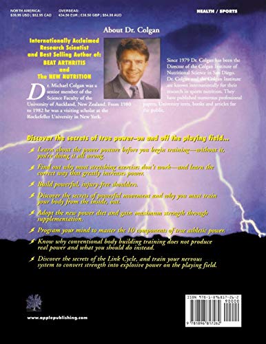 Internationally acclaimed scientist and best selling author, Dr. Michael Colgan explains the right way to gain maximum strength, speed, and endurance. LARGE FORMAT Fully Illustrated 384 pages Quality Softcover Although this best selling book is about weight training, it is NOT a book about bodybuilding! It is a book about achieving maximum strength, speed, and endurance. Unlike bodybuilders, who do not have to perform on the playing field, athletes should never train heavy all year long. The most a human body can take of any heavy weight program is about 60 minutes. After that, hormone levels start to decline, neural fatigue sets in, and further weight work will not increase muscle power, or even muscle mass, according to Dr. Colgan. To back up his claims, Colgan typically sites mountains of scientific evidence, as well as his own experience with hundreds of athletes to demonstrate how over-training creates injury and long-term fatigue of the human nervous system. This large format, fully illustrated training manual can be used to increase the power, endurance, and speed of athletes of all levels, from weekend warriors – to Olympic medalists. Discover the secrets of true power – on and off the playing field… Learn about the Power Posture before you begin training – without it, you’re doing it all wrong Find out why most stretching exercises don’t work – and learn the correct way that greatly increases power Build powerful, injury-free shoulders Discover the secrets of powerful movement, and why you must train your body from the inside, out Adopt the New Power Diet and gain maximum strength through supplementation Program your mind to master the 10 components of true athletic power Know why conventional bodybuilding training does not produce real power – and what you should do instead Learn the secrets of the “Link Cycle”, and train your nervous system to convert strength into explosive power on the playing field