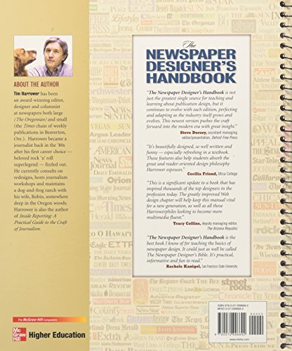 The Newspaper Designer’s Handbook is a step by step guide to every aspect of newspaper design, from basic page layout to complex infographics. The new edition features dozens of new page-design examples, as well as an expanded section on web design and increased emphasis on digital photography. This textbook is for journalism students and professionals alike. It is loaded with examples, advice, design ideas, and exercises that teach students how to manipulate the basic elements of design (photos, headlines, and text); create charts, maps, and diagrams; design attractive photo spreads; add effective, appealing sidebars to complex stories; create lively, engaging feature page designs; work with color; and redesign a newspaper.