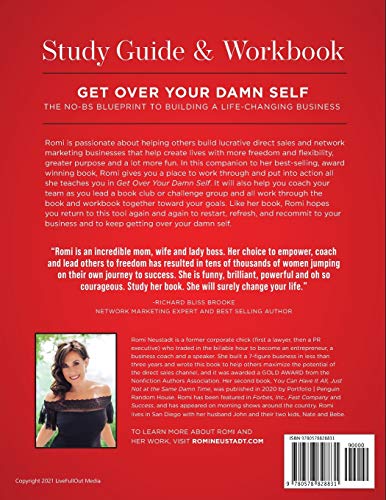 IT’S ABOUT DAMN TIME! The long-awaited Study Guide & Workbook for the Best-Selling, Award-Winning GET OVER YOUR DAMN SELF that’s helped hundreds of thousands of direct sales entrepreneurs.Romi is passionate about helping others build lucrative direct sales and network marketing businesses. In this companion to her beloved first book, Romi gives you a place to work through and put into action all she teaches you. No matter where you’re at in your business, Get Over Your Damn Self and her Study Guide & Workbook can help you kick off your business, coach your new team members, take your personal business to the next level and run a training series or book club for your entire team. Return to this tool again and again to restart, refresh and recommit to your business and to keep getting over your damn self. Because we humans need that. Romi Neustadt is a former corporate chick (first a lawyer, then a PR executive) who traded in the billable hour to become an entrepreneur, a business coach and a speaker. She built a 7-figure business in less than three years and wrote Get Over Your Damn Self to help others maximize the potential of the direct sales channel. It was awarded a GOLD AWARD from the Nonfiction Authors Association. Her second book, You Can Have It All, Just Not at the Same Damn Time, was published in 2020 by Portfolio | Penguin Random House. Romi has been featured in Forbes, Inc., Fast Company and Success, and has appeared on morning shows around the country. Romi lives in San Diego with her husband John and their two kids, Nate and Bebe. To learn more about Romi and her work, visit romineustadt.com.