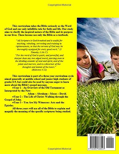 This curriculum takes the Bible seriously as the Word of God and our only infallible rule for faith and life. Our study aims to clarify the inspired nature of the Bible and its purpose in our lives. “All Scripture is God-breathed and is useful for teaching, rebuking, correcting and training in righteousness, so that the servant of God may be thoroughly equipped for every good work.” (2 Timothy 3:16-17) This curriculum is part of a three year curriculum cycle aimed generally at middle school and junior high students of grades 6-9, but could also be used by anyone eager to learn more about the Bible’s gospel message. *Year 1 – The Old Testament as Interpreted by the New: Adam – Abraham – Moses – David *Year 2 – The Life of Christ through the gospels: The Word – The Shepherd – The Lamb – The Light *Year 3 – My Witnesses through Acts and the Epistles: Jerusalem – Judea – Samaria – The Ends of the Earth All three years will use all of the Bible to explain and enlarge the meaning of the specific scriptures being studied. These lessons use only the Bible as a textbook. The Bible is the point of agreement among all Christians, even though its interpretation may not be. The aim of this curriculum is to familiarize the student with the biblical content as a firm foundation for the teachings, values and principles passed on to the student from their parents, tutor and church. There is no answer guide. The Bible is the answer guide. All the answers are found in the Bible except for the You Think questions which are designed for the student to think about what the Bible says, make logical and thoughtful applications, and then answer. All questions are open ended requiring the student’s writing skill in his own words, thus making an answer guide unhelpful. See the section on Test & Grading for additional ideas. This is a Tutor Assisted Curriculum for the study of the Bible by students in the grade 6-9 range. This is a very flexible system and works well in various situations . . . *Large or small classrooms, or with individual students. *Teachers with heavy teaching loads and many preparations. *Differences among student families in denominational and theological perspectives. There are three formats of this curriculum: *EBook/Kindle digital formatis primarily for preview purposes. *Teacher’s Print Edition has all materials for all four Quarters, including Test Assignments. It also includes the right to copy or reproduce any and all materials in it. *Student Print Editionscontain one quarter of the curriculum at a time. The Student Editions are workbooks with lines wherever writing is required to complete an assignment, and printing is on one side of the paper only, so pages can be removed and turned in separately &/or 3-hole punched for inclusion in a binder. These Editions do not include the Test Assignments. The Student Editions do not include rights to copy or reproduce the material in any way.