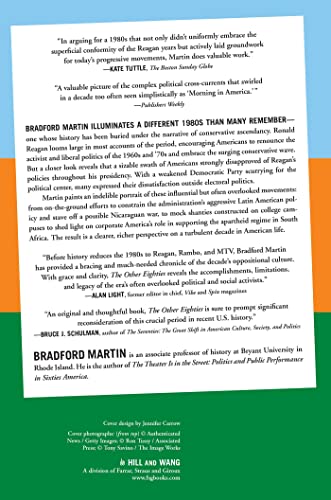 In this engaging book, Bradford Martin illuminates a different 1980s than many remember–one whose history has been buried under the celebratory narrative of conservative ascendancy. Ronald Reagan looms large in most accounts of the period, encouraging Americans to renounce the activist and liberal politics of the 1960s and ’70s and embrace the resurgent conservative wave. But a closer look reveals that a sizable swath of Americans strongly disapproved of Reagan’s policies throughout his presidency. With a weakened Democratic Party scurrying for the political center, many expressed their dissatisfaction outside electoral politics. Unlike the civil rights and Vietnam-era protesters, activists of the 1980s often found themselves on the defensive, struggling to preserve the hard-won victories of the previous era. Their successes, then, were not in ushering in a new era of progressive reforms but in effecting change in areas from professional life to popular culture, while beating back an even more forceful political shift to the right.