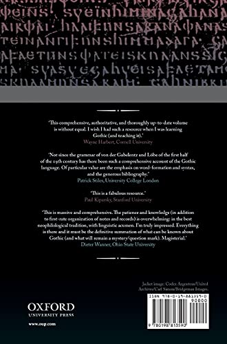 This volume provides a comprehensive reference grammar of Gothic, the earliest attested language of the Germanic family (apart from runic inscriptions), dating to the fourth century. The bulk of the extant Gothic corpus is a translation of the Bible, of which only a portion remains, and which has been the focus of most previous works. This book is the first in English to also draw on the recently discovered Bologna fragment and Crimean graffiti, original Gothic texts that provide more insights into the language. Following an overview of the history of the Goths and the origin of the Gothic language, Gary Miller explores all the major topics in Gothic grammar, beginning with the alphabet and phonology, and proceeding through subjects such as case functions, prepositions and particles, compounding, derivation, and verbal and sentential syntax. He also presents a selection of Gothic texts with notes and vocabulary, and ends with a chapter on linearization, including an overview of Gothic in its Germanic context. The Oxford Gothic Grammar will be an invaluable reference for all Indo-Europeanists, Germanic scholars, and historical linguists, from advanced undergraduate level upwards.