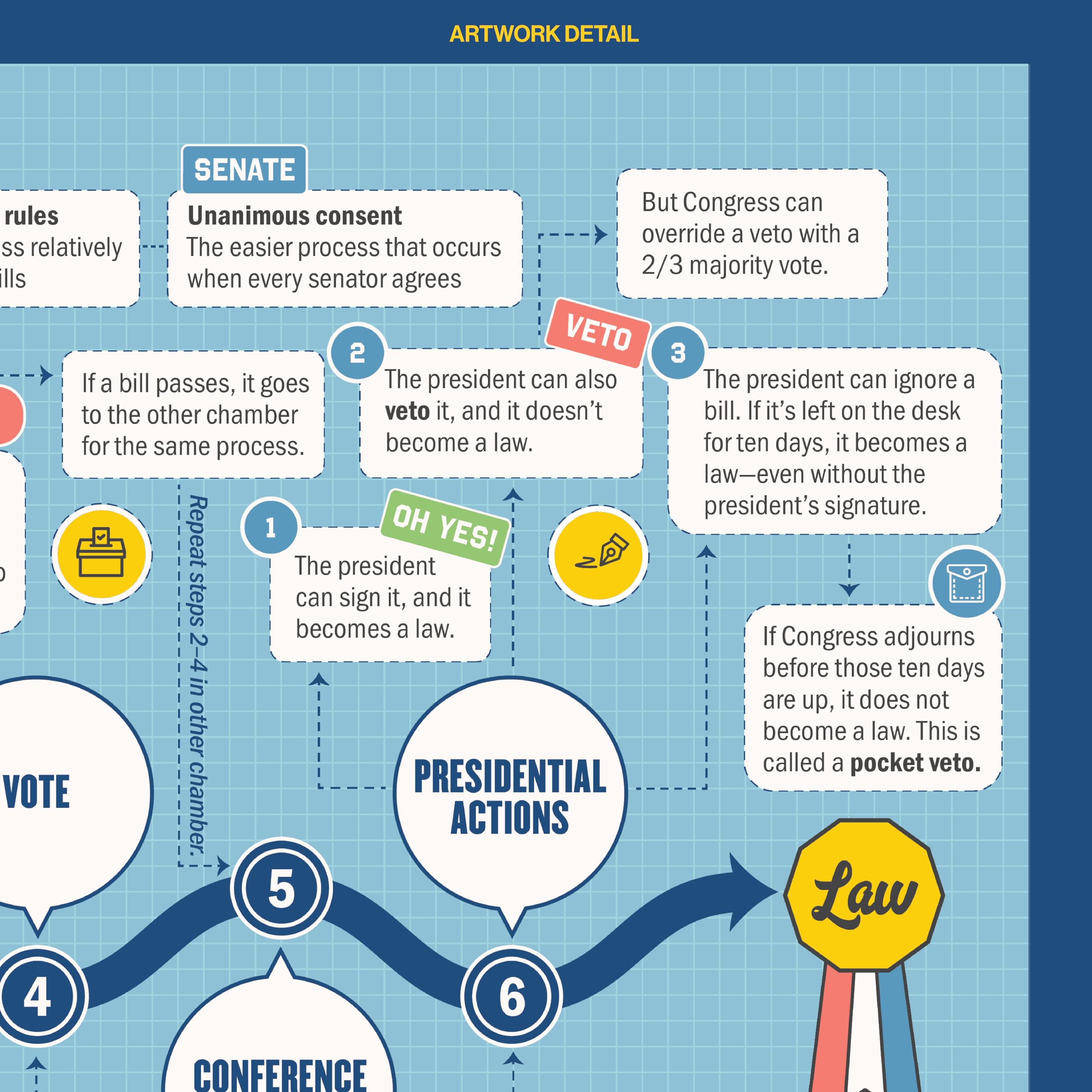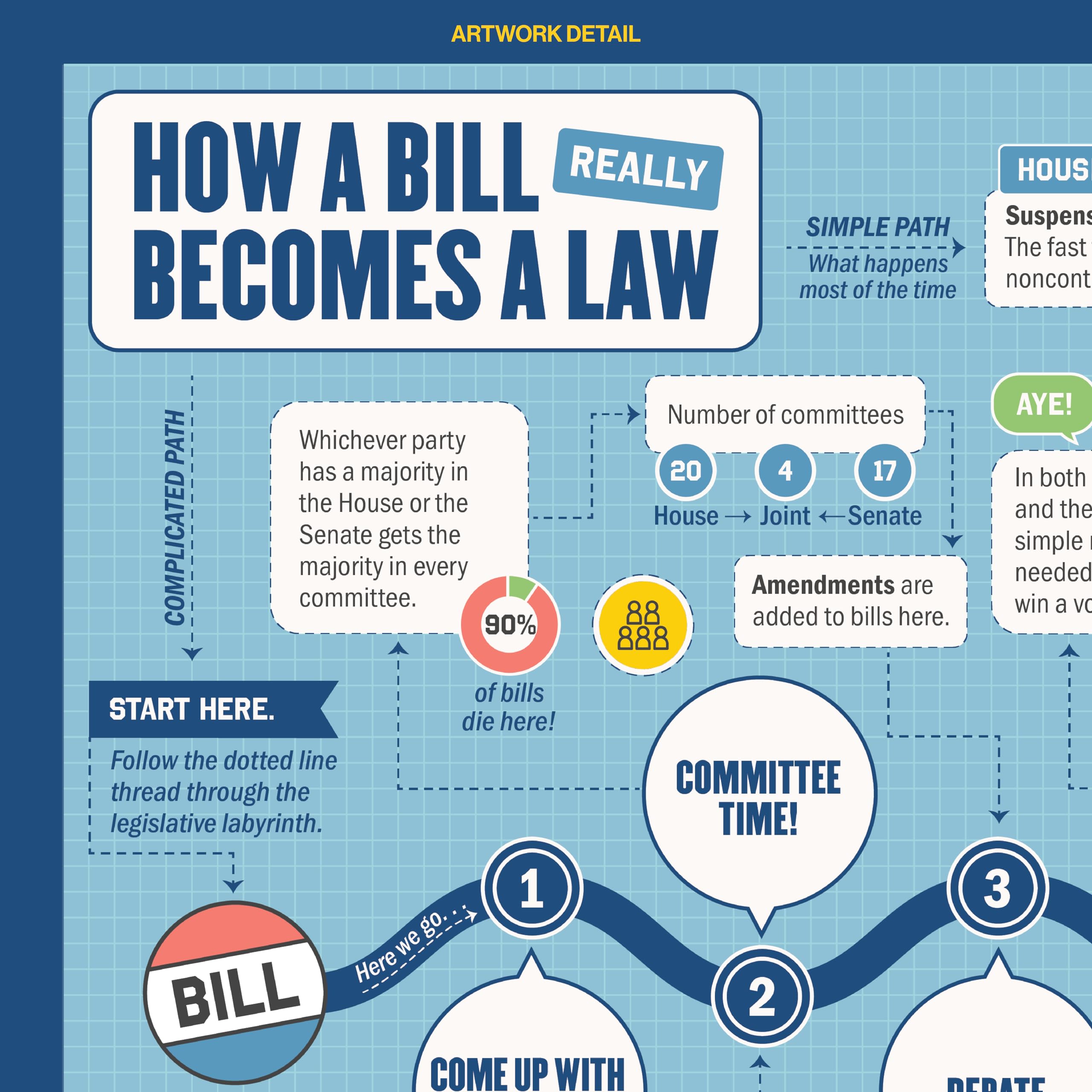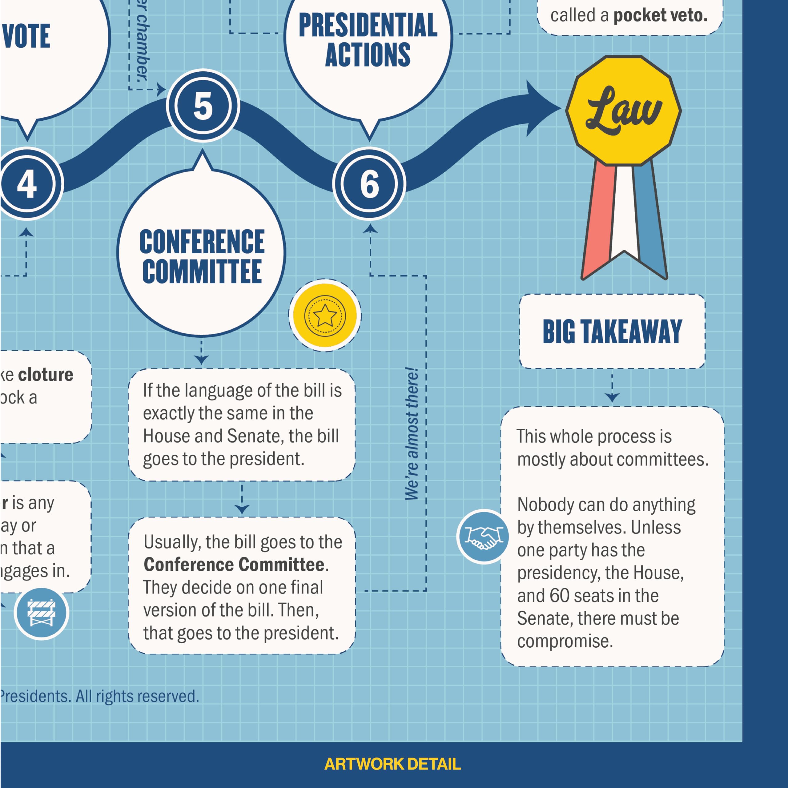 This poster provides a visual aid for learning about U.S. history, civics, and the legislative process.