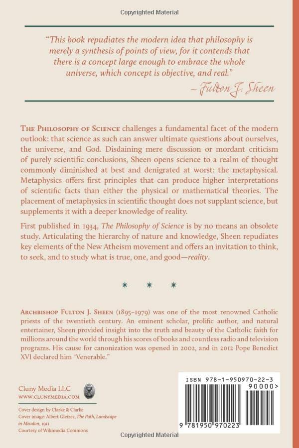 The Philosophy of Science challenges a fundamental facet of the modern outlook: that science as such can answer ultimate questions about ourselves, the universe, and God. Disdaining mere discussion or mordant criticism of purely scientific conclusions, Sheen opens science to a realm of thought commonly diminished at best and denigrated at worst: the metaphysical. Metaphysics offers first principles that can produce higher interpretations of scientific facts than either the physical or mathematical theories. The placement of metaphysics in scientific thought does not supplant science, but supplements it with a deeper knowledge of reality. First published in 1934, The Philosophy of Science is by no means an obsolete study. Articulating the hierarchy of nature and knowledge, Sheen repudiates key elements of the New Atheism movement and offers an invitation to think, to seek, and to study what is true, one, and good–reality.