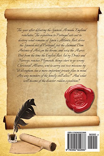 The year after defeating the Spanish Armada, England retaliates. The expedition to Portugal sets out to destroy what remains of Spain’s Atlantic fleet, drive the Spanish out of Portugal, put the claimant Dom Antonio of Aviz on the throne, and seize the Azores. But from the time the English fleet, led by Drake and Norreys, reaches Plymouth, things start to go wrong. Christoval Alvarez, sent to carry out two missions by Walsingham, has a more important private plan in mind. Are any members of the family still alive? And what will become of the disaster-ridden expedition?