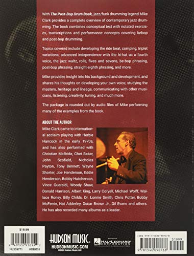 (Percussion). With The Post-Bop Drum Book , jazz/funk drumming legend Mike Clark provides a complete overview of contemporary jazz drumming. The book combines conceptual text with notated exercises, transcriptions and performance concepts covering bebop and post-bop drumming. Topics covered include developing the ride beat, comping, triplet variations, advanced independence with the hi-hat as a fourth voice, the jazz waltz, rolls, fives and sevens, be-bop phrasing, post-bop phrasing, straight-eighth phrasing, and more. Mike provides insight into his background and development, and shares his thoughts on developing your own voice, studying the masters, heritage and lineage, communicating with other musicians, listening, creativity, tuning, and much more. The package is rounded out by audio and video files of Mike performing many of the examples from the book. Audio is accessed online using the unique code inside the book and can be streamed or downloaded. The audio files include PLAYBACK+, a multi-functional audio player that allows you to slow down audio without changing pitch, set loop points, change keys, and pan left or right.