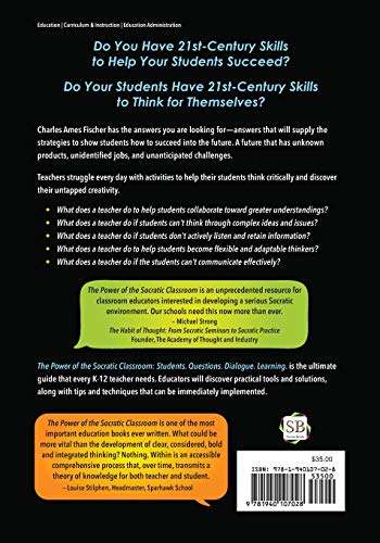 Do You Have 21st-Century Skills to Help Your Students Succeed? Do Your Students Have 21st-Century Skills to Think for Themselves? Charles Ames Fischer has the answers you are looking for, answers that will supply the strategies to show students how to succeed into the future. A future that has unknown products, unidentified jobs, and unanticipated challenges. Teachers struggle every day with activities to help their students think critically and discover their untapped creativity. What does a teacher do to help students collaborate toward greater understandings? What does a teacher do if students can t think through complex ideas and issues? What does a teacher do if students don t actively listen and retain information? What does a teacher do to help students become flexible and adaptable thinkers? What does a teacher do if the students can t communicate effectively? The Power of the Socratic Classroom is the ultimate guide that every K-12 teacher needs. Educators will discover practical tools and solutions, along with tips and techniques that can be immediately implemented.