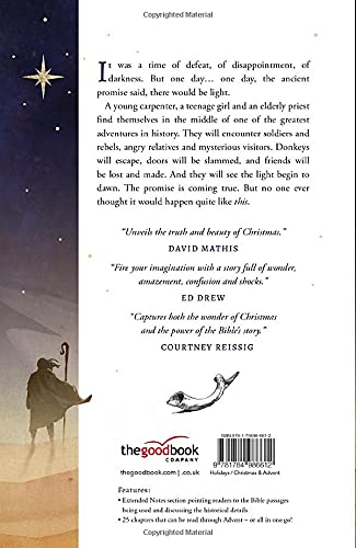 Captivating retelling of the nativity story. Great Christmas gift for kids who love to read. What if you were visited by an angel one night who told you that you were to give birth to the Son of God? How would you feel? What might you think? Written as a series of vivid and dramatic first-person accounts, The Promise and The Light tells the stories of Mary, Joseph and Zechariah as they experience the events of the first Christmas. Written in a lively and engaging style, this imaginative yet biblically faithful book will captivate children aged 8-12. Readers will be able to get inside the hearts and minds of some of the key players in the Christmas story and will appreciate the power and excitement of what happened and why it is so amazing for us today. With 25 chapters, readers may choose to read a chapter a day during Advent.