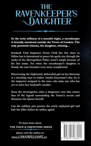 In the eerie stillness of a moonlit night, a ravenkeeper is brutally murdered outside the Tower of London. The only potential witness, his daughter, missing… Scotland Yard Inspector Henry Field has few clues to follow but is determined to prove his quick rise through the ranks of the Metropolitan Police wasn’t simply because of his last name. Yet when the ravenkeeper’s daughter is found, the case becomes even more complicated. Discovering the frightened, disheveled girl on her doorstep is a shocking start to widow Amelia Greystone’s day. So is the inspector assigned to the case–the same one who has yet to solve her husband’s murder. Soon the investigation takes a dangerous turn that rouses fear of the legend surrounding the Tower’s ravens and threatens the Queen herself. Can the unlikely pair protect the newly orphaned girl and halt the killer before he strikes again? Fans of Irina Shapiro, Andrea Penrose, and Miss Scarlet and the Duke will enjoy this mystery series set on the dark streets of Victorian London.