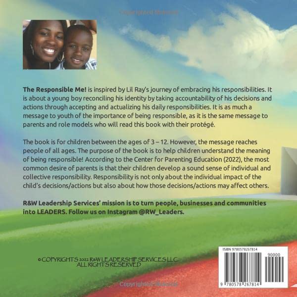 The Responsible Me! is inspired by Lil Ray’s journey of embracing his responsibilities. It is about a young boy reconciling his identity by taking accountability of his decisions and actions through accepting and actualizing his daily responsibilities. It is as much a message to youth of the importance of being responsible, as it is the same message to parents and role models who will read this book with their protege. The book is for children between the ages of 3 – 12. However, the message reaches people of all ages. The purpose of the book is to help children understand the meaning of responsibility! According to the Center for Parenting Education (2022), the most common desire of parents is that their children develop a sound sense of individual and collective responsibility.Responsibility is not only about the individual impact of the child’s decisions/actions but also about how those decisions/actions may affect others. R&W Leadership Services’ mission is to turn people, businesses and communities into LEADERS. Follow us on Instagram @RW_Leaders.