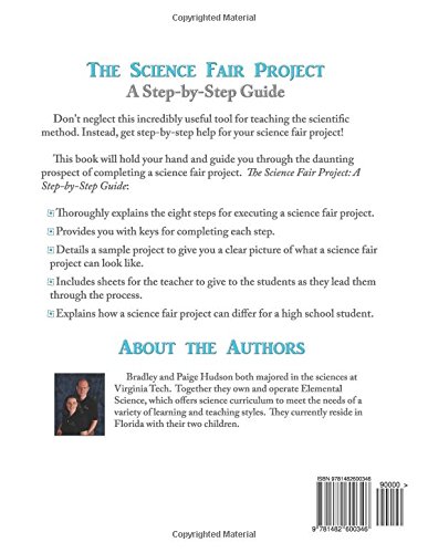 Don’t neglect this incredibly useful tool for teaching the scientific method. Instead, get step-by-step help for your science fair project! This book will hold your hand and guide you through the daunting prospect of completing a science fair project. The Science Fair Project: A Step-by-Step Guide: >Thoroughly explains the eight steps for executing a science fair project. >Provides you with keys for completing each step. >Details a sample project to give you a clear picture of what a science fair project can look like. >Includes sheets for the teacher to give to the students as they lead them through the process. >Explains how a science fair project can differ for a high school student.