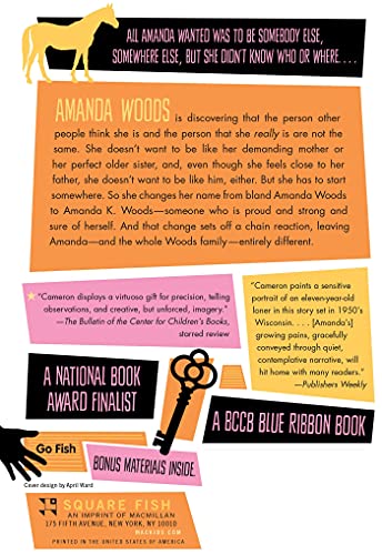 Amanda Woods is discovering that there are some things in life you just can’t change, like who your parents are or how your older sister treats you, but she is determined to change what she can. To begin with, she’s not going to be just plain Amanda Woods (the girl her mother seems to think is just average). She’s going to be Amanda K. Woods-someone who is proud and strong and sure of herself, someone who can have a French pen pal and a best friend of her own choosing, someone who finds four-leaf clovers and can get perfect scores on her math homework. There is more to Amanda than anyone else can see, things about her that Amanda herself doesn’t even know yet, but she’s finding out. In The Secret Life of Amanda K. Woods, her first novel for older children, Ann Cameron presents a heroine who is philosophical and honest as only a twelve-year-old can be.