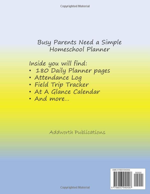 Be the first to review “The Simple Homeschool Planner: A No Nonsense Homeschool Planner For Busy Parents: 180 daily planner pages, track homeschooling attendance, assignments, projects, field trips, grades, tasks and more…” Cancel reply