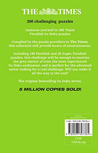 A new collection of previously unpublished Fiendish Su Doku puzzles with the added bonus of 30 Super Fiendish puzzles. Perfect for the advanced solver in need of a constant supply of ultra-difficult puzzles. Guaranteed to provide hours of absorbing, brain-stretching entertainment. The puzzles in this collection are of the highest quality supplied by Sudoku Syndication, the Sudoku suppliers to The Times newspaper. Since the first Su Doku puzzle appeared in The Times in November 2004, they have become a phenomenon, with over 5 million copies of The Times Su Doku books sold worldwide. You don’t need to be a mathematical genius to solve these puzzles; it is simply a question of logic. Each puzzle has a unique solution – and there’s no guesswork required. The Times Su Doku remains the original, the best and the market leader.