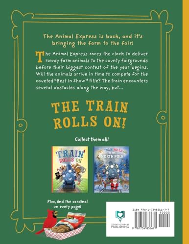 The Animal Express train is back, and it’s more determined than ever! The Animal Express has great news to share- it’s bringing the farm to the Clay County Fair! In the third installment of this popular series, the Animal Express races the clock to deliver rowdy farm animals to the county fairgrounds before their biggest contest of the year begins. Will the animals arrive in time to compete for the coveted “Best In Show” title? The train encounters several obstacles along the way, but…THE TRAIN ROLLS ON! This book is a timeless tale of perseverance and working together as a team to overcome obstacles.With its rhyming text, memorable refrain, and stunning illustrations, this exciting farm-to-fair train adventure is sure to resonate with children and adults alike! This Book Is Perfect For… Fans of The Little Engine That Could by Watty Piper and Little Blue Truck by Alice Schertle Gifting to young train-lovers Reading any time of the day Reading aloud in the classroom, library, or at home Engaging toddlers and students in preschool, kindergarten, and lower-elementary grades (ages 3-6) Teaching perseverance and teamwork concepts Promoting vocabulary and language development Farm or fair book events and collections Book Features: Catchy, Rhyming Text – Rhymes help children predict language patterns and develop other critical language and reading skills. They also promote memory and rhythm development in a fun and exciting way. Memorable Refrain – “The train rolls on!” is a powerful catchphrase that is ripe to become a go-to saying for kids and their caregivers when they need to persevere through difficult situations. Eye-Catching Illustrations – The train and its passengers are expertly-rendered, and each has a unique personality that shines through on the page. Glossary – This resource provides simple definitions for 17 words used throughout the book and is intended to help children enhance their vocabulary with each and every read. Look and Find – Children will enjoy searching for the cardinals that accompany the train in every illustration!