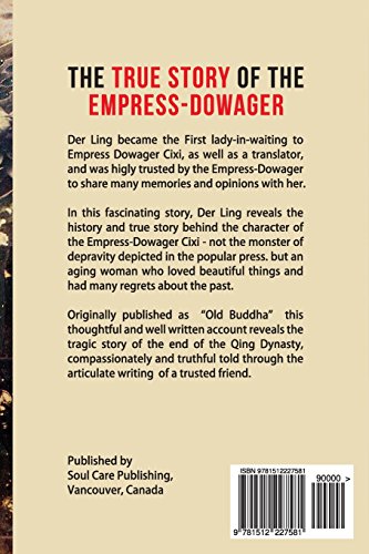 Der Ling became the First lady-in-waiting to Empress Dowager Cixi, as well as a translator, and was highly trusted by the Empress-Dowager to share many memories and opinions with her.In this fascinating story, Der Ling reveals the history and true story behind the character of the Empress-Dowager Cixi – not the monster of depravity depicted in the popular press. but an aging woman who loved beautiful things and had many regrets about the past.Originally published as “Old Buddha” this thoughtful and well written account reveals the tragic story of the end of the Qing Dynasty, compassionately and truthful told through the articulate writing of a trusted friend.