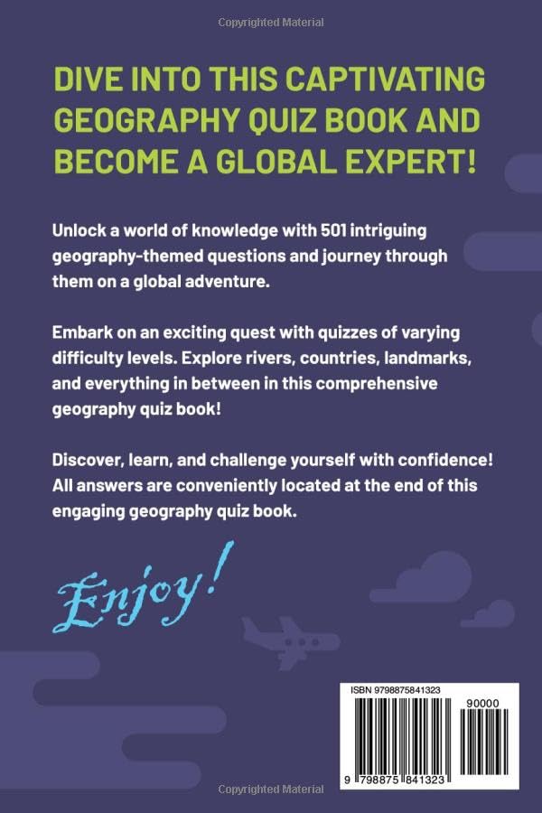 This quiz book enhances geography knowledge by testing the student on countries, landmarks, and other global facts.