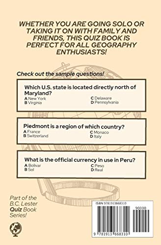 Are you looking for a fun and challenging quiz to tackle solo? Or looking to tackle it with friends and family? Or looking for a big bank of questions for a pub quiz/quiz night? Here’s what you will discover with this book: 720 multiple choice questions: Choose from 4 possible answers from each question. Unlike other quiz books we have seen out there – possible answers in The Ultimate Geography Quiz book are meant to be challenging and the possible answers are well researched to truly make you think – see below for more details. Challenging questions throughout: Made to really engage the brain cells, even for the die-hard geographers! Child/Family friendly questions: No sensitive topics are asked about within this book. Keep Score: Optional scoring system to measure your quizzing ability! Matte paperback cover for durability and ease of carrying, so your child can tackle questions at home or on the go. Tackle the quiz alone, with your partner, or make it a social event with your friends and family! Quizzes are great on commutes, and long drives – and equally as great as a social fun event for friends and family. You cannot go wrong with a quiz night! This book makes a perfect gift for adults and children with an interest in geography. Recommend age 12+ Question topics within The Ultimate Geography Quiz include, but not limited to: Country and continent names, size, borders and locations respective to each other. Mountain, mountain heights, mountain range and volcano names and their locations. Ocean, seas, marginal seas, and their locations respective to each other City, building, landmark and capital city names and location. Deserts, forests, jungles, glaciers! Country size, flags, language currency, religion, climate and population. Flag, flag colors, other flag attributes. Physical Geography jargon. World record facts regarding geography. Challenging multiple choice questions: We have seen several quiz books that have a poor selection of multiple choice questions, such as example below… What is the highest mountain in Turkey? A Mt. Whitney B Mt. Everest C Mt. Ararat D Mt. Cook Whilst this question is somewhat tricky in itself, the answers given allow most geographers to eliminate the 3 wrong answers quickly to come up with answer C. Instead of this approach, we have kept the quiz more like shown below to make this strategy of quizzing harder for the challenger… What is the highest mountain in Turkey? A Mt. Elbrus B Mt. Davamond C Mt. Ararat D Mt. Bazarduzu Although it may be easy for some seasoned geographers, this question, by the choices given is harder for the most part, and will hopefully trigger more conversation/thought before answering. Order your copy now for hours of endless fun. Be sure to check out other books in our range by clicking on the Author Page!