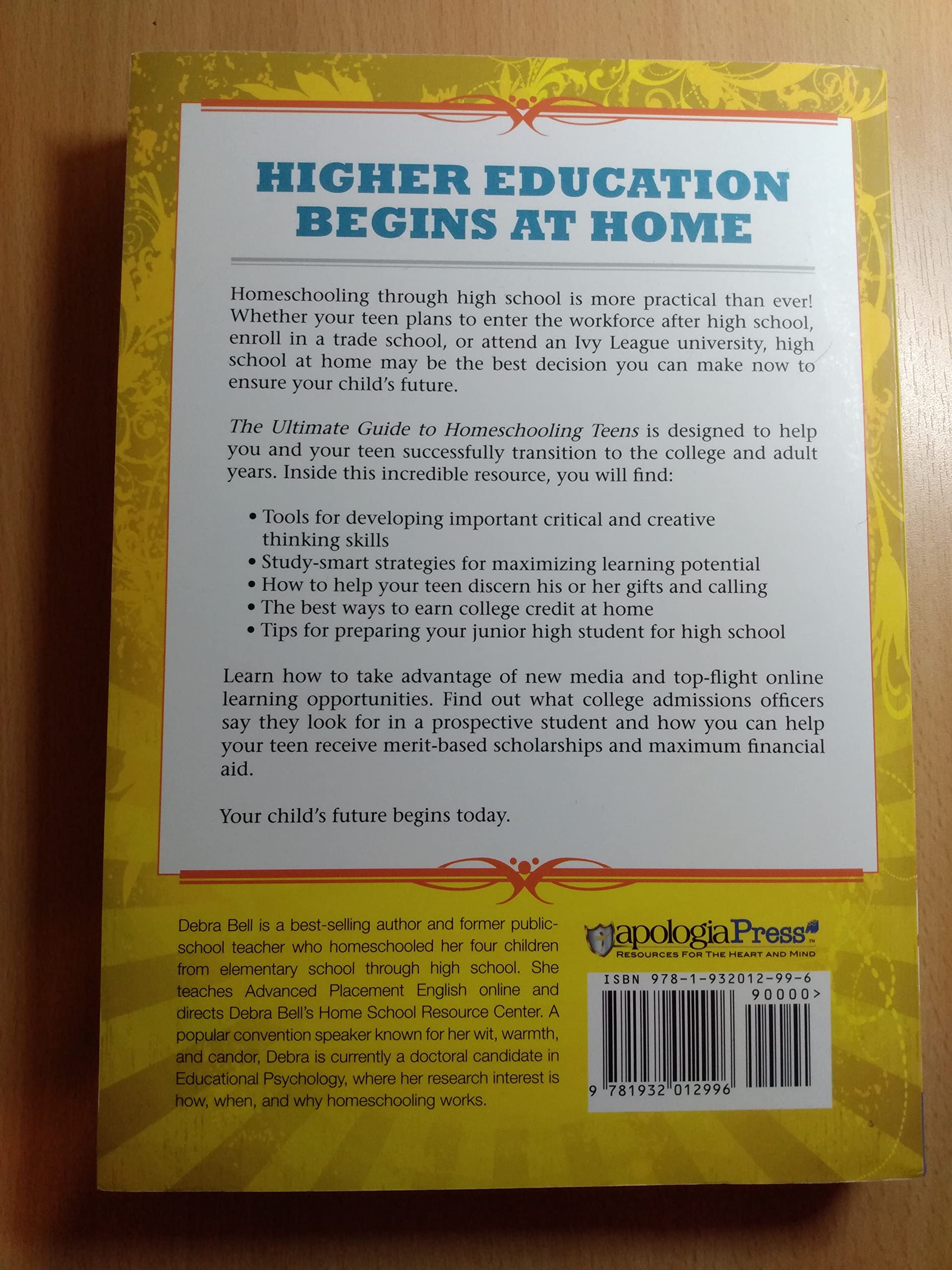 Debra Bell has helped numerous homeschooled students, including four of her own, gain college admission and win substantial scholarships to the schools of their choice. Now she can help you and your child navigate high school at home and successfully transition to the college and adult years. Inside this incredible resource, you will find: *Tools for developing critical and creative thinking skills *Study-smart strategies for maximized learning *What to do if your child is behind or ahead *How to help your teen discern his gifts and calling *How to prepare your child for high school during grades 6 through 8 Here are all the forms, charts, and resources you will need to teach your child through high school, as well as a guide to taking advantage of new media and the best online learning opportunities. Learn what college admissions officers say they look for in a prospective student and how you can help your teen apply for and receive merit-based scholarships and maximum financial aid. There’s also a bonus section on making the most of the college years.