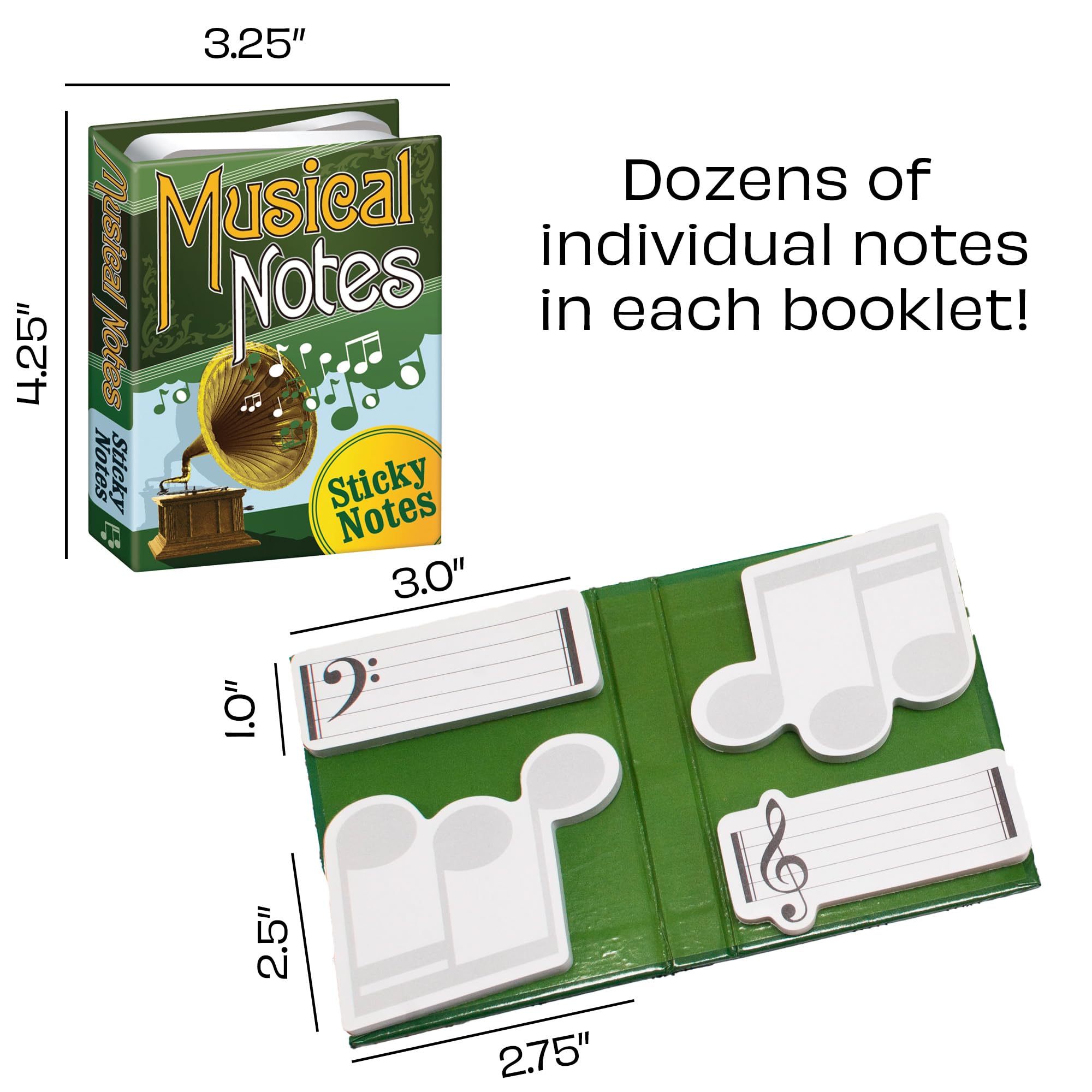 Each booklet is full of hundreds of self-sticking sheets featuring four different musical notes and sheet music-related designs.