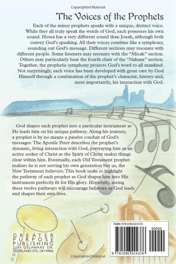 Each of the minor prophets speaks with a unique, distinct voice. While they all truly speak the words of God, each possesses his own sound. Hosea has a very different sound than Jonah, although both convey God’s speaking. All their voices combine like a symphony, sounding out God’s message. Different sections may resonate with different people. Some listeners may resonate with the “Micah” section. Others may particularly hear the fourth chair of the “Nahum” section. Together, the prophetic symphony projects God’s word to all mankind. Not surprisingly, each voice has been developed with great care by God Himself through a combination of the prophet’s character, history and, most importantly, his interaction with God. God shapes each prophet into a particular instrument as He leads him on his unique pathway. Along his journey, a prophet is by no means a passive conduit of God’s messages. The Apostle Peter describes the prophet’s dynamic, living interaction with God, portraying him as an active seeker of Christ as the Spirit of Christ makes things clear within him. Eventually, each Old Testament prophet realizes he is not serving his own generation but us, the New Testament believers. This book seeks to highlight the pathway of each prophet as God shapes him into His instrument perfectly fit for His glory. Hopefully, seeing these twelve pathways will encourage believers as God leads and shapes their own lives.