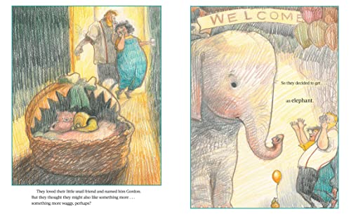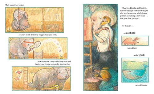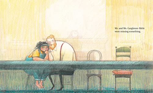“The gorgeous illustrations and lovely storyline make this an instant classic.” –Kirkus Reviews (starred review) From the creator of The Big Umbrella comes another poetic and lushly illustrated picture book about the joy of companionship and there always being room for one more in this tale about the search for the perfect pet. Mr. and Mrs. Gargleson-Bittle are looking for a change. Their life has become too quiet, and little changes like eating waffles only help for a moment. They decide to get a pet–but what kind should they have? First they welcome a snail into their home, then an elephant named Louise, then an aardvark named Sam. One by one they come, and while the house is definitely no longer quiet, Mr. and Mrs. Gargleson-Bittle still have room and love for more. Could this waggy, lick-your-face puppy be what makes their family complete?