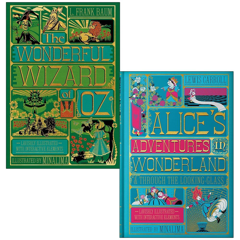 Please Note That The Following Individual Books As Per Original ISBN and Cover Image In this Listing shall be Dispatched The Wonderful Wizard of Oz By L. Frank Baum, Alice’s Adventures in Wonderland By Lewis Carroll (MinaLima Edition) 2 Books Collection The Wonderful Wizard of Oz Interactive (MinaLima Edition): When a tornado strikes the Kansas prairie, young orphan Dorothy Gale and her little dog Toto are blown away to Oz, a magical place filled with witches, munchkins, winged monkeys, and other unusual inhabitants. Lost and afraid, all Dorothy wants is to return to her Uncle Henry and Auntie Em. But to do so, the Good Witch of the North tells her, she must follow the Yellow Brick Road that leads to the Emerald City. There, she will find the fearsome Wizard. Alice’s Adventures in Wonderland (MinaLima Edition): Originally published in 1865, Lewis Carroll’s exquisite Alice’s Adventures in Wonderland & Through the Looking-Glass have remained revered classics for generations. The story of Alice, an inquisitive heroine who falls through a rabbit hole and into a whimsical world, has captured the hearts of readers of all ages. Perhaps the most popular female character in English literature, Alice is accompanied on her journey of trials and tribulations by the frantic White Rabbit, the demented and terrifying Queen of Hearts, the intriguing Mad Hatter, and many other eccentric characters.