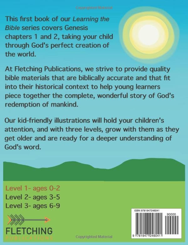 This first book of our Learning the Bible series covers Genesis chapters 1 and 2, taking your child through God’s perfect creation of the world. At fletching publications, we strive to provide quality Bible materials that are biblically accurate and that fit into their historical context to help young learners piece together the complete, wonderful story of God’s redemption of mankind. Our kid-friendly illustrations will hold your children’s attention, and with three levels, grow with them as they get older and are ready for a deeper understanding of God’s word. The World Before Sin Includes: God Creates the World God Creates People Written in rhyming verse to captivate our youngest learners and foster their early language development, our level 1 books are created with children two years and under in mind, but can be enjoyed by children of any age.