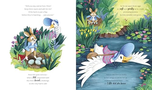 Peter Rabbit teaches little ducklings how to fly! Peter Rabbit is looking after Jemima Puddle-duck’s eggs one sunny spring day. When they hatch, Peter decides it’s time to teach them how to fly! But when spinning hats and flying jumps don’t work, Peter will discover that everyone learns new things at their own pace. With Nicola Kinnear’s lovely illustrations and Rachel Bright’s engaging prose, fans young and old will love the reimagined world of Beatrix Potter.