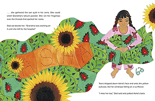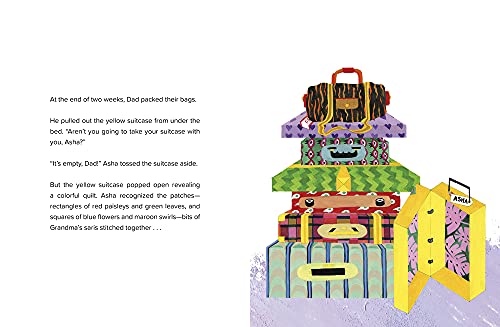 Asha travels with her parents from America to India to mourn her grandmother’s passing. When they arrive at her grandmother’s house, it’s filled with strangers–and no Grandma. Asha’s grief and anger are compounded by the empty yellow suitcase usually reserved for gifts to and from Grandma, but when she discovers a gift left behind just for her, Asha realizes that the memory of her grandmother will live on inside her, no matter where she lives.
